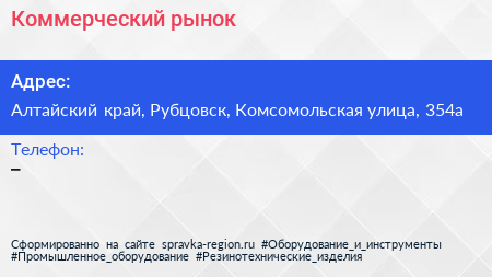 Коммерческий рынок по адресу Алтайский край, Рубцовск, Комсомольская улица, 354а в дальнейшем Организация, размещена в следующих категориях: