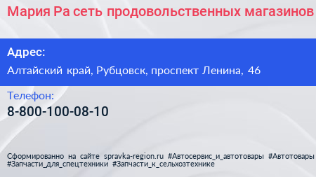 Мария-Ра, сеть продовольственных магазинов по адресу Алтайский край, Рубцовск, проспект Ленина, 46 в дальнейшем Организация, размещена в следующих категориях:
