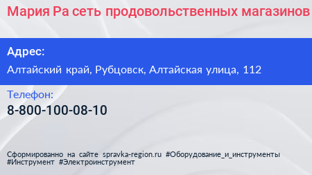 Мария-Ра, сеть продовольственных магазинов по адресу Алтайский край, Рубцовск, Алтайская улица, 112 в дальнейшем Организация, размещена в следующих категориях: