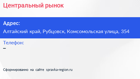 Центральный рынок по адресу Алтайский край, Рубцовск, Комсомольская улица, 354 в дальнейшем Организация, размещена в следующих категориях: