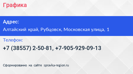 Графика по адресу Алтайский край, Рубцовск, Московская улица, 1 в дальнейшем Организация, размещена в следующих категориях: