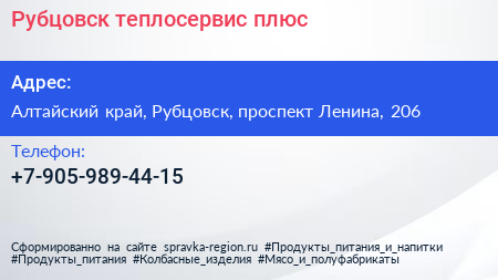 Рубцовск теплосервис плюс по адресу Алтайский край, Рубцовск, проспект Ленина, 206 в дальнейшем Организация, размещена в следующих категориях: