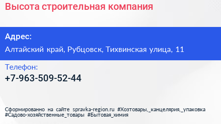 Высота, строительная компания по адресу Алтайский край, Рубцовск, Тихвинская улица, 11 в дальнейшем Организация, размещена в следующих категориях:
