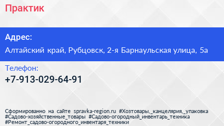 Практик по адресу Алтайский край, Рубцовск, 2-я Барнаульская улица, 5а в дальнейшем Организация, размещена в следующих категориях: