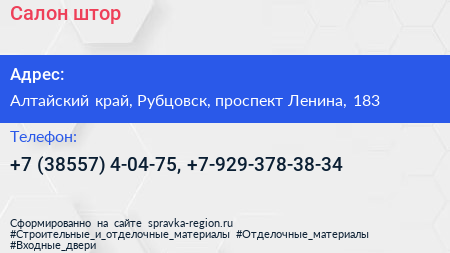 Салон штор по адресу Алтайский край, Рубцовск, проспект Ленина, 183 в дальнейшем Организация, размещена в следующих категориях: