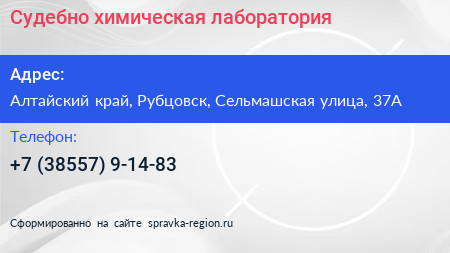 Судебно-химическая лаборатория по адресу Алтайский край, Рубцовск, Сельмашская улица, 37А в дальнейшем Организация, размещена в следующих категориях: