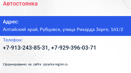 Автостоянка по адресу Алтайский край, Рубцовск, улица Рихарда Зорге, 161/2 в дальнейшем Организация, размещена в следующих категориях: