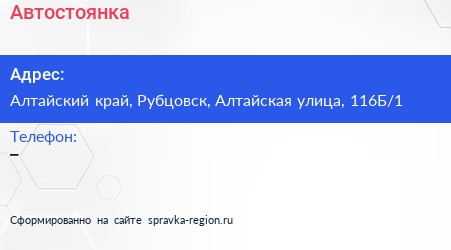 Адрес: Алтайский край, Рубцовск, Рабочий тракт, 18Б