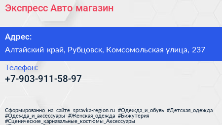 Экспресс-Авто, магазин по адресу Алтайский край, Рубцовск, Комсомольская улица, 237 в дальнейшем Организация, размещена в следующих категориях: