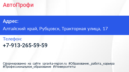АвтоПрофи по адресу Алтайский край, Рубцовск, Тракторная улица, 17 в дальнейшем Организация, размещена в следующих категориях: