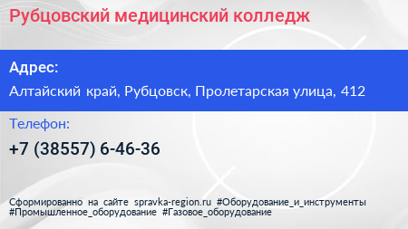 Рубцовский медицинский колледж по адресу Алтайский край, Рубцовск, Пролетарская улица, 412 в дальнейшем Организация, размещена в следующих категориях: