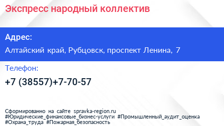 Экспресс, народный коллектив по адресу Алтайский край, Рубцовск, проспект Ленина, 7 в дальнейшем Организация, размещена в следующих категориях: