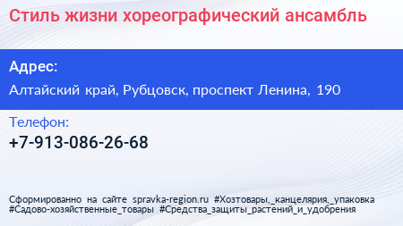 Стиль жизни, хореографический ансамбль по адресу Алтайский край, Рубцовск, проспект Ленина, 190 в дальнейшем Организация, размещена в следующих категориях:
