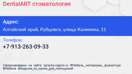 DentalART, стоматология по адресу Алтайский край, Рубцовск, улица Калинина, 11 в дальнейшем Организация, размещена в следующих категориях: