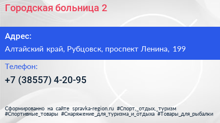 Городская больница №2 по адресу Алтайский край, Рубцовск, проспект Ленина, 199 в дальнейшем Организация, размещена в следующих категориях: