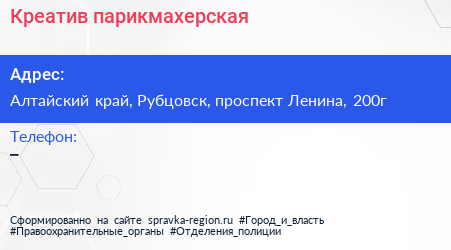 Креатив, парикмахерская по адресу Алтайский край, Рубцовск, проспект Ленина, 200г в дальнейшем Организация, размещена в следующих категориях: