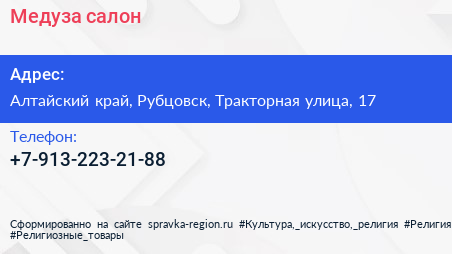 Медуза, салон по адресу Алтайский край, Рубцовск, Тракторная улица, 17 в дальнейшем Организация, размещена в следующих категориях: