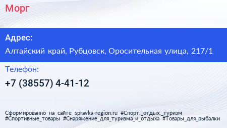 Морг по адресу Алтайский край, Рубцовск, Оросительная улица, 217/1 в дальнейшем Организация, размещена в следующих категориях: