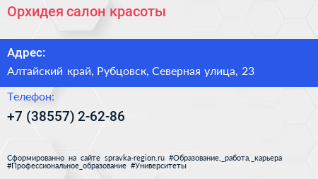 Орхидея, салон красоты по адресу Алтайский край, Рубцовск, Северная улица, 23 в дальнейшем Организация, размещена в следующих категориях: