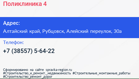 Поликлиника №4 по адресу Алтайский край, Рубцовск, Алейский переулок, 30а в дальнейшем Организация, размещена в следующих категориях: