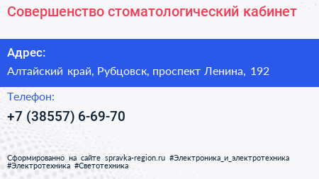 Совершенство, стоматологический кабинет по адресу Алтайский край, Рубцовск, проспект Ленина, 192 в дальнейшем Организация, размещена в следующих категориях: