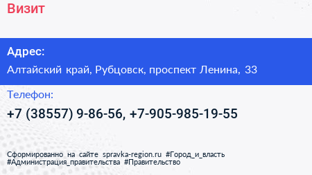 Визит+ по адресу Алтайский край, Рубцовск, проспект Ленина, 33 в дальнейшем Организация, размещена в следующих категориях: