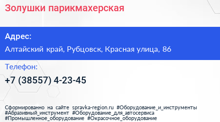 Золушки, парикмахерская по адресу Алтайский край, Рубцовск, Красная улица, 86 в дальнейшем Организация, размещена в следующих категориях: