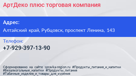 АртДеко плюс, торговая компания по адресу Алтайский край, Рубцовск, проспект Ленина, 143 в дальнейшем Организация, размещена в следующих категориях: