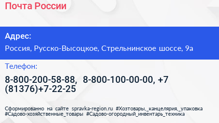 Почта России по адресу Почтовое отделение № 188514, 9А, Стрельнинское шоссе, Ропша, Ропшинское сельское поселение, Ломоносовский район, Ленинградская область, Северо-Западный федеральный округ, Россия в дальнейшем Организация, размещена в следующих категориях: