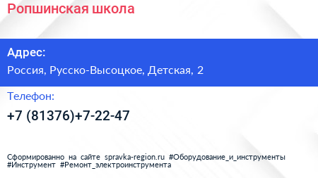 Ропшинская школа по адресу Ропшинская СОШ, 2, Детская улица, Михайловская, Ропша, Ропшинское сельское поселение, Ломоносовский район, Ленинградская область, Северо-Западный федеральный округ, Россия в дальнейшем Организация, размещена в следующих категориях: