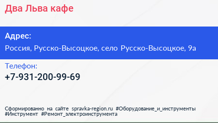 Два Льва, кафе по адресу 9А, 41К-631, Русско-Высоцкое, Русско-Высоцкое сельское поселение, Ломоносовский район, Ленинградская область, Северо-Западный федеральный округ, 188516, Россия в дальнейшем Организация, размещена в следующих категориях: