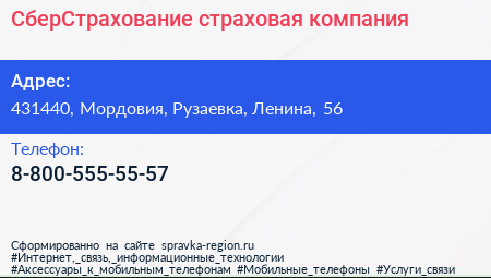 СберСтрахование, страховая компания по адресу 431440, Мордовия, Рузаевка, Ленина, 56 в дальнейшем Организация, размещена в следующих категориях: