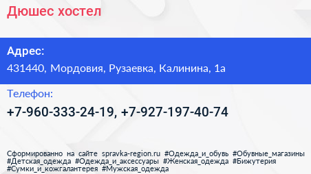Дюшес, хостел по адресу 431440, Мордовия, Рузаевка, Калинина, 1а в дальнейшем Организация, размещена в следующих категориях: