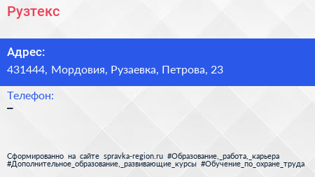 Рузтекс по адресу 431444, Мордовия, Рузаевка, Петрова, 23 в дальнейшем Организация, размещена в следующих категориях: