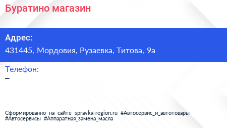 Буратино, магазин по адресу 431445, Мордовия, Рузаевка, Титова, 9а в дальнейшем Организация, размещена в следующих категориях: