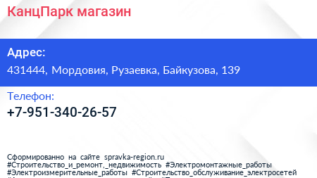 КанцПарк, магазин по адресу 431444, Мордовия, Рузаевка, Байкузова, 139 в дальнейшем Организация, размещена в следующих категориях: