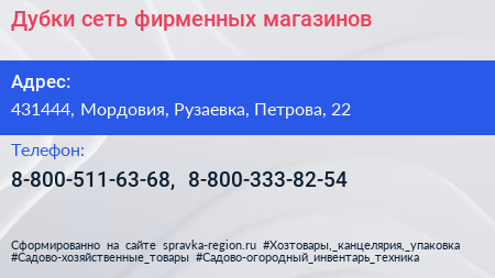 Дубки, сеть фирменных магазинов по адресу 431444, Мордовия, Рузаевка, Петрова, 22 в дальнейшем Организация, размещена в следующих категориях: