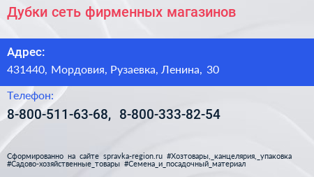 Дубки, сеть фирменных магазинов по адресу 431440, Мордовия, Рузаевка, Ленина, 30 в дальнейшем Организация, размещена в следующих категориях: