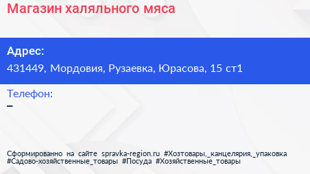 Магазин халяльного мяса по адресу 431449, Мордовия, Рузаевка, Юрасова, 15 ст1 в дальнейшем Организация, размещена в следующих категориях: