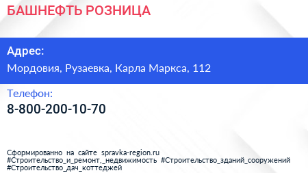 БАШНЕФТЬ-РОЗНИЦА по адресу Мордовия, Рузаевка, Карла Маркса, 112 в дальнейшем Организация, размещена в следующих категориях: