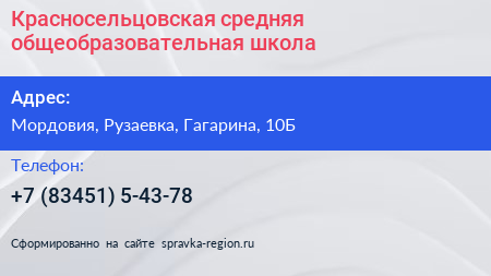 Красносельцовская средняя общеобразовательная школа по адресу Мордовия, Рузаевка, Гагарина, 10Б в дальнейшем Организация, размещена в следующих категориях: