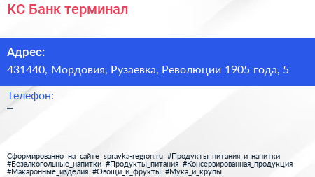 КС Банк, терминал по адресу 431440, Мордовия, Рузаевка, Революции 1905 года, 5 в дальнейшем Организация, размещена в следующих категориях: