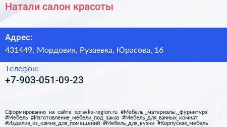 Натали, салон красоты по адресу 431449, Мордовия, Рузаевка, Юрасова, 16 в дальнейшем Организация, размещена в следующих категориях: