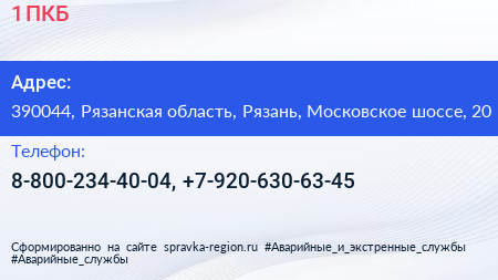 1 ПКБ по адресу 390044, Рязанская область, Рязань, Московское шоссе, 20 в дальнейшем Организация, размещена в следующих категориях: