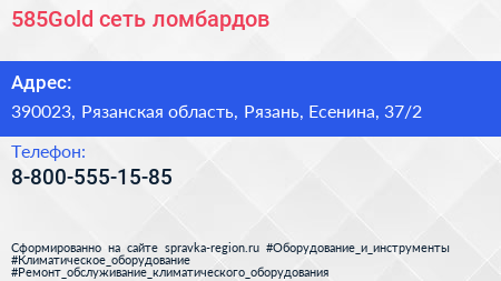 585Gold, сеть ломбардов по адресу 390023, Рязанская область, Рязань, Есенина, 37/2 в дальнейшем Организация, размещена в следующих категориях:
