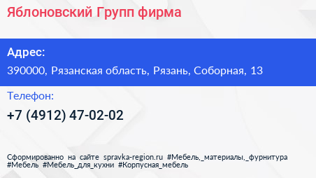 Яблоновский Групп, фирма по адресу 390000, Рязанская область, Рязань, Соборная, 13 в дальнейшем Организация, размещена в следующих категориях: