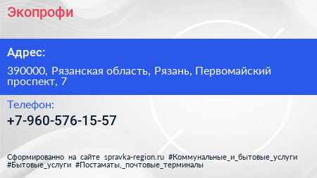 Экопрофи по адресу 390000, Рязанская область, Рязань, Первомайский проспект, 7 в дальнейшем Организация, размещена в следующих категориях: