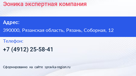 Эоника, экспертная компания по адресу 390000, Рязанская область, Рязань, Соборная, 12 в дальнейшем Организация, размещена в следующих категориях: