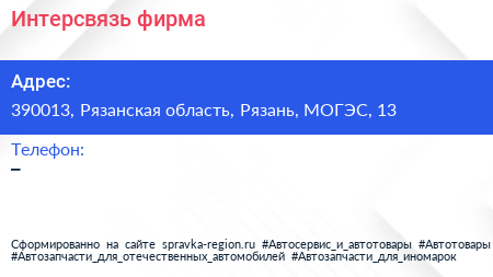 Интерсвязь, фирма по адресу 390013, Рязанская область, Рязань, МОГЭС, 13 в дальнейшем Организация, размещена в следующих категориях: