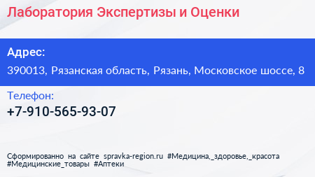 Лаборатория Экспертизы и Оценки по адресу 390013, Рязанская область, Рязань, Московское шоссе, 8 в дальнейшем Организация, размещена в следующих категориях: